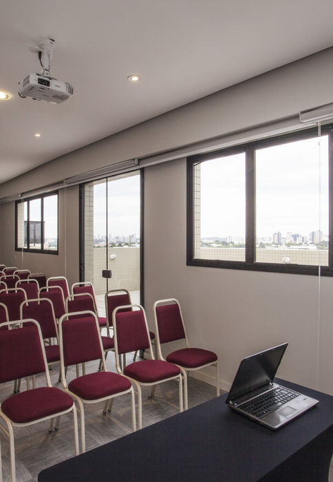 A sala de eventos está localizada na cobertura, com vista panorâmica para a cidade. Comporta até 32 pessoas simultaneamente e conta com iluminação natural, materiais de apoio, opção de escolher um menu de eventos sob medida e também contratação de staff capacitado para atender a diversos tipos de eventos.